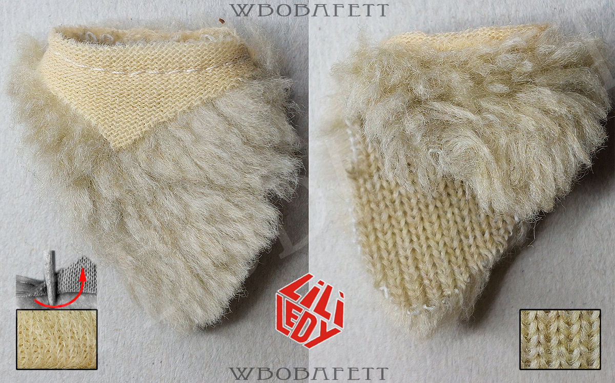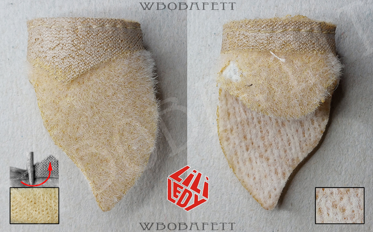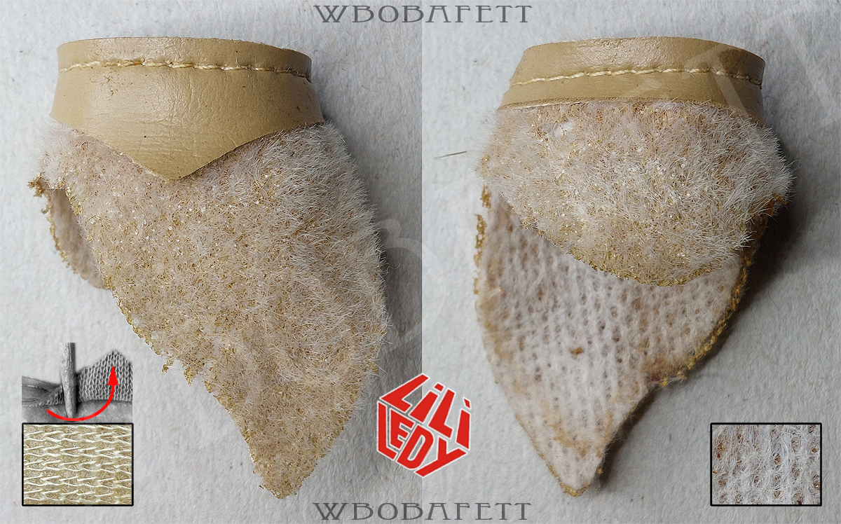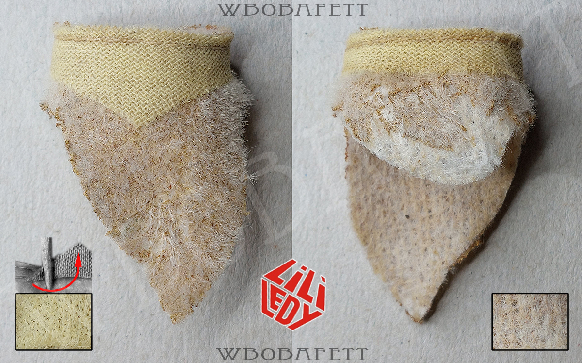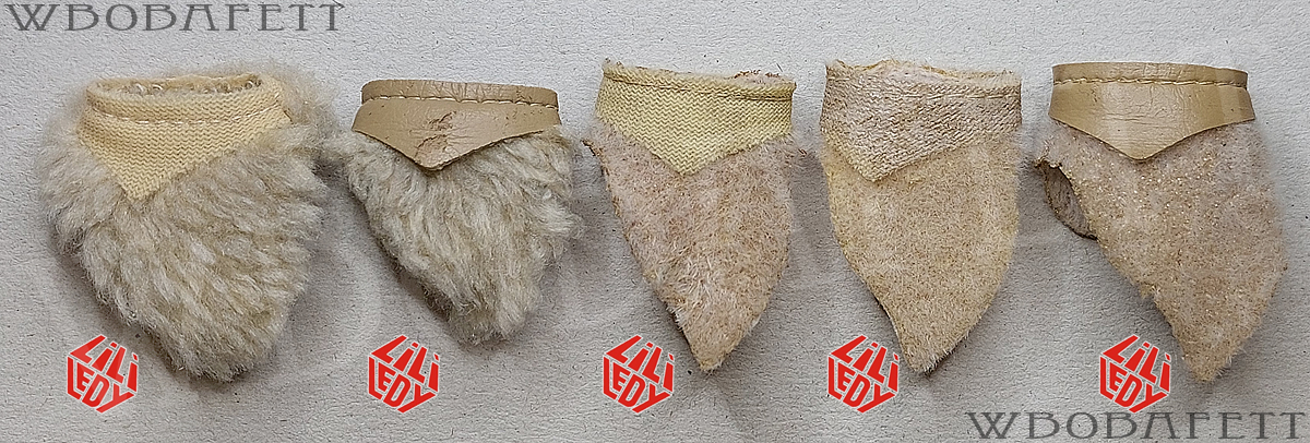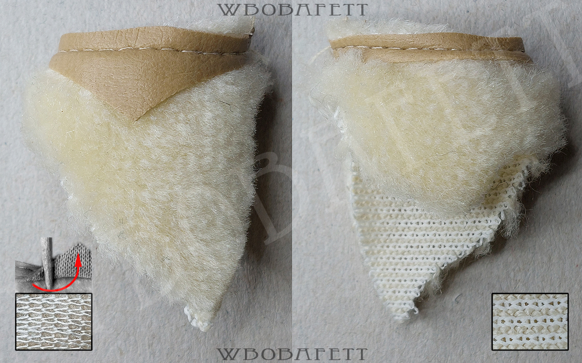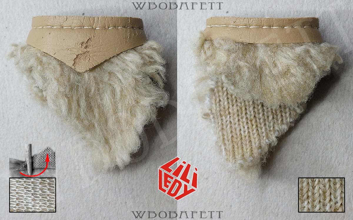 M3 was produced by LILI LEDY in Mexico. These skirts have a rounded belt with the skirt tip also being rounded. The fluffy (M3.1) skirts are made out of a very thick linen-like material in stockinette stitch. The initial Retorno releases came with a fluffy skirt, while the later versions for the MIM cards were accessorized with the flatter version of the skirt. Both, the fluffy and the flat version, came also with a “non leathery” belt. Those so called fabric belts (M3.1b and M3.2b) originally had a paint or vinyl layer with a fabric backing which over the years turned brittle and delaminated, exposing the fabric backing.