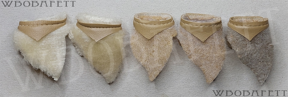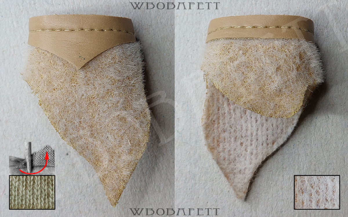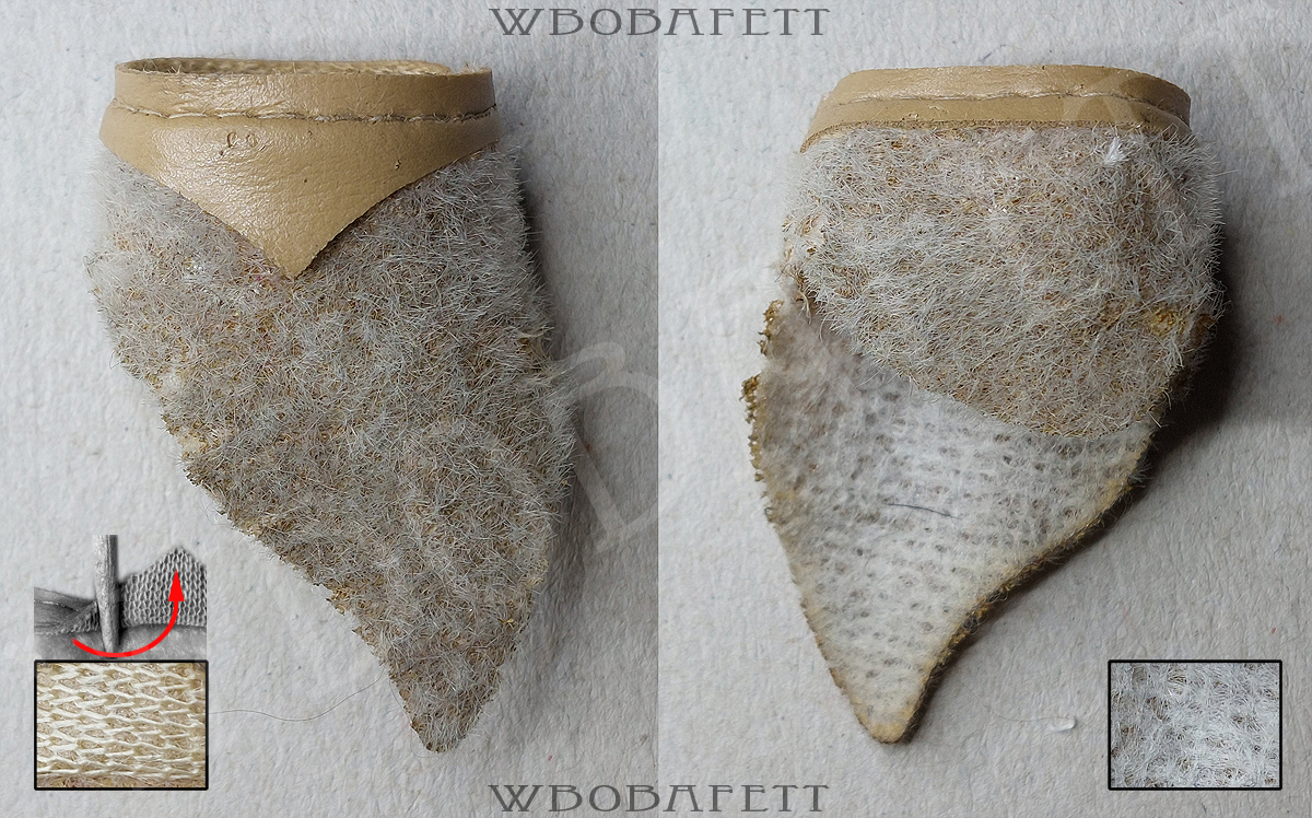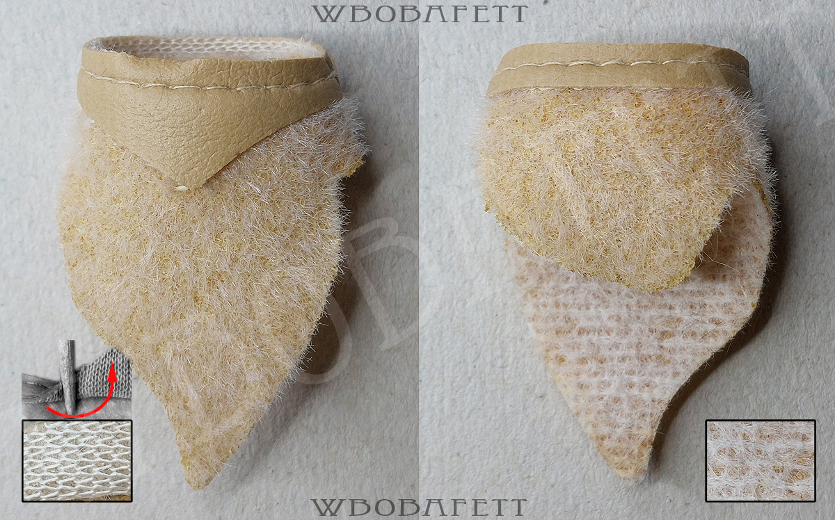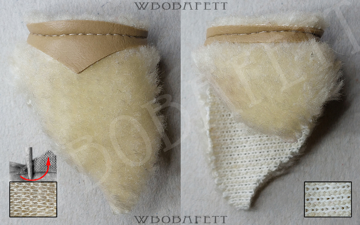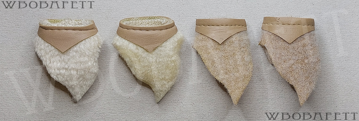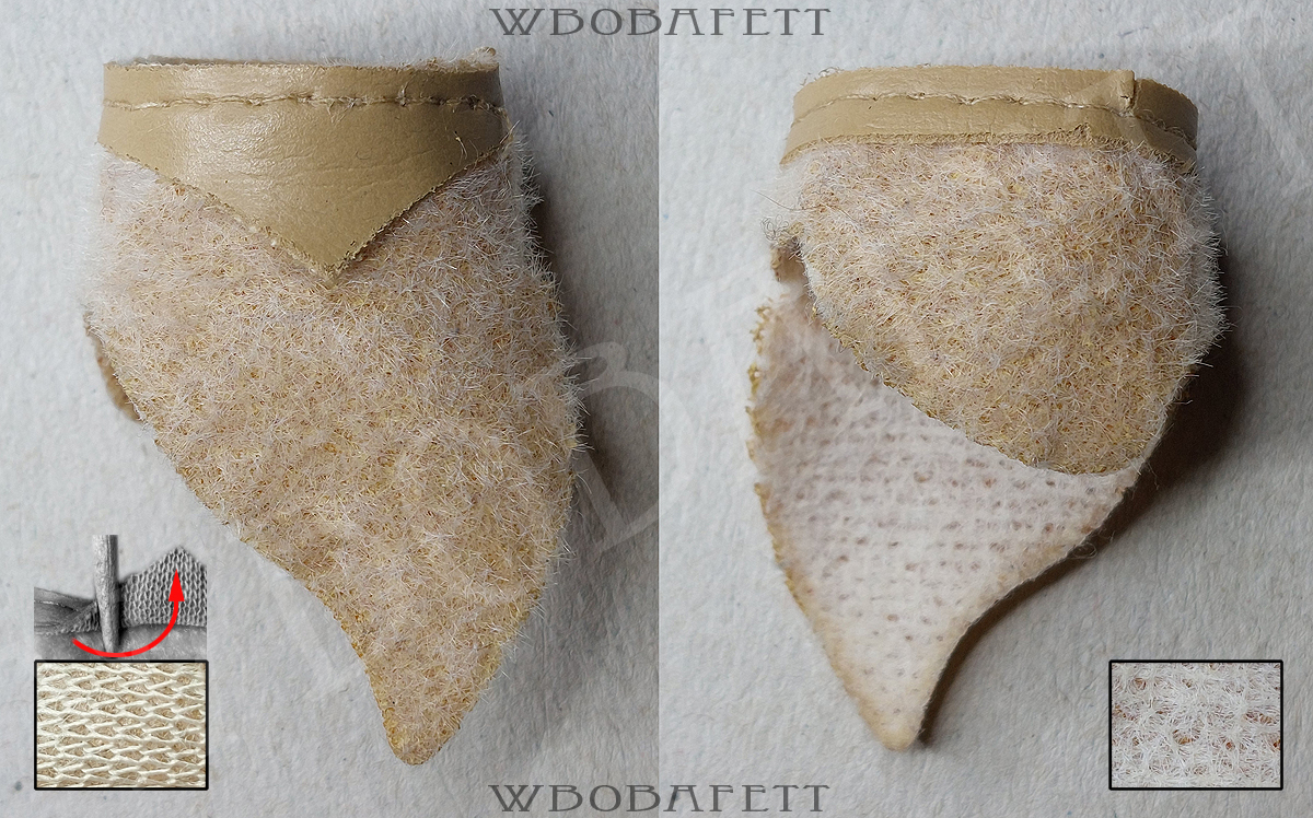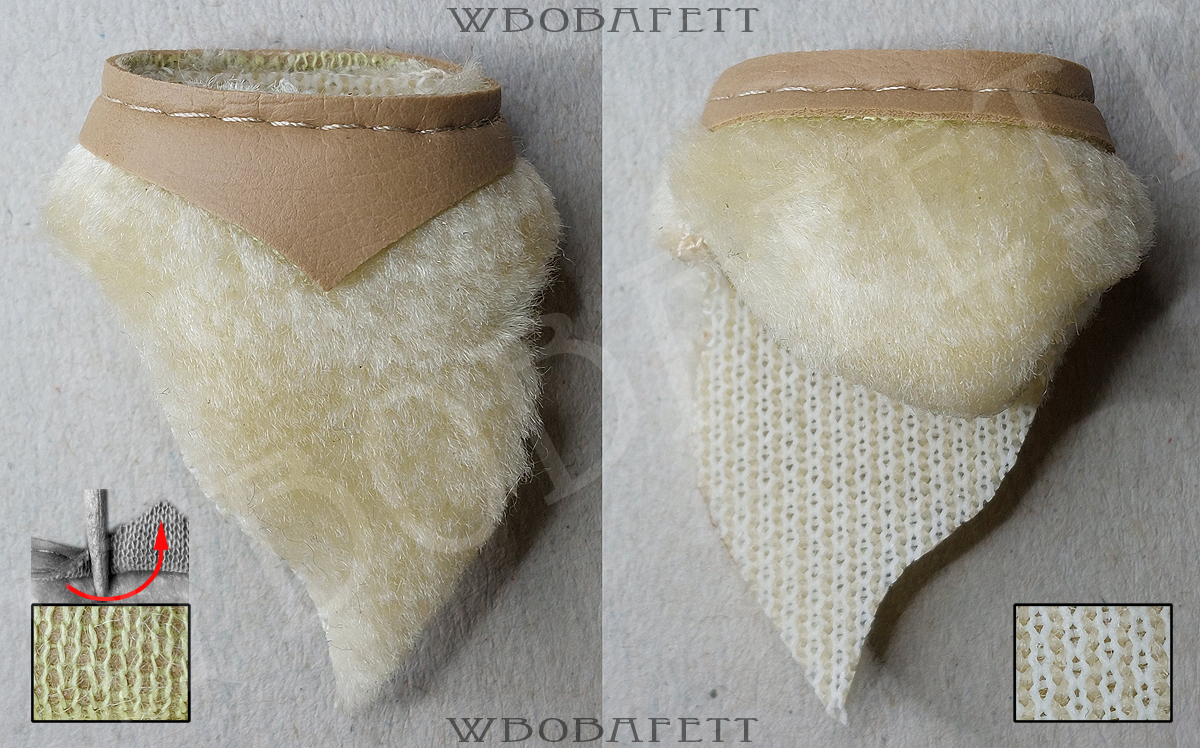 M3 was produced by LILI LEDY in Mexico. These skirts have a rounded belt with the skirt tip also being rounded. The fluffy (M3.1) skirts are made out of a very thick linen-like material in stockinette stitch. The initial Retorno releases came with a fluffy skirt, while the later versions for the MIM cards were accessorized with the flatter version of the skirt. Both, the fluffy and the flat version, came also with a “non leathery” belt. Those so called fabric belts (M3.1b and M3.2b) originally had a paint or vinyl layer with a fabric backing which over the years turned brittle and delaminated, exposing the fabric backing.