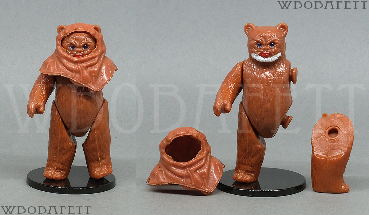 The fully articulated bootleg (F/A 2) figures shown above were made in Mexico in the 80s and do have 4 articulation points. The pivot-joint on those was made to the torso so that the limbs were plugged on. These are made out of a rubbery material known in three brown tones (reddish brown, light brown, dark brown). The figures can be pure in colour or mixed. Chief Chirpa, Lumat and Paploo share the same arms and legs that were copied from Chief Chirpa. All of those share the blue painted eyes and that unique white painted chin beard.