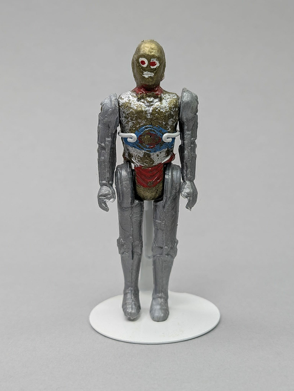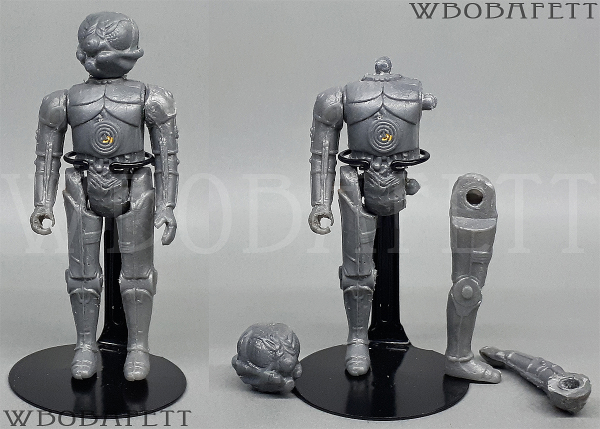 The F/A bootleg C-3PO figure shown above was made in Mexico in the 90s till the 2000s. This figure is often confused with beeing an 80s production, which is incorrect in my opinion. These also have peg-joints, where the limbs just plug into the torso. Some of these figures even got in the mix with Robocop parts (arms and/or legs).