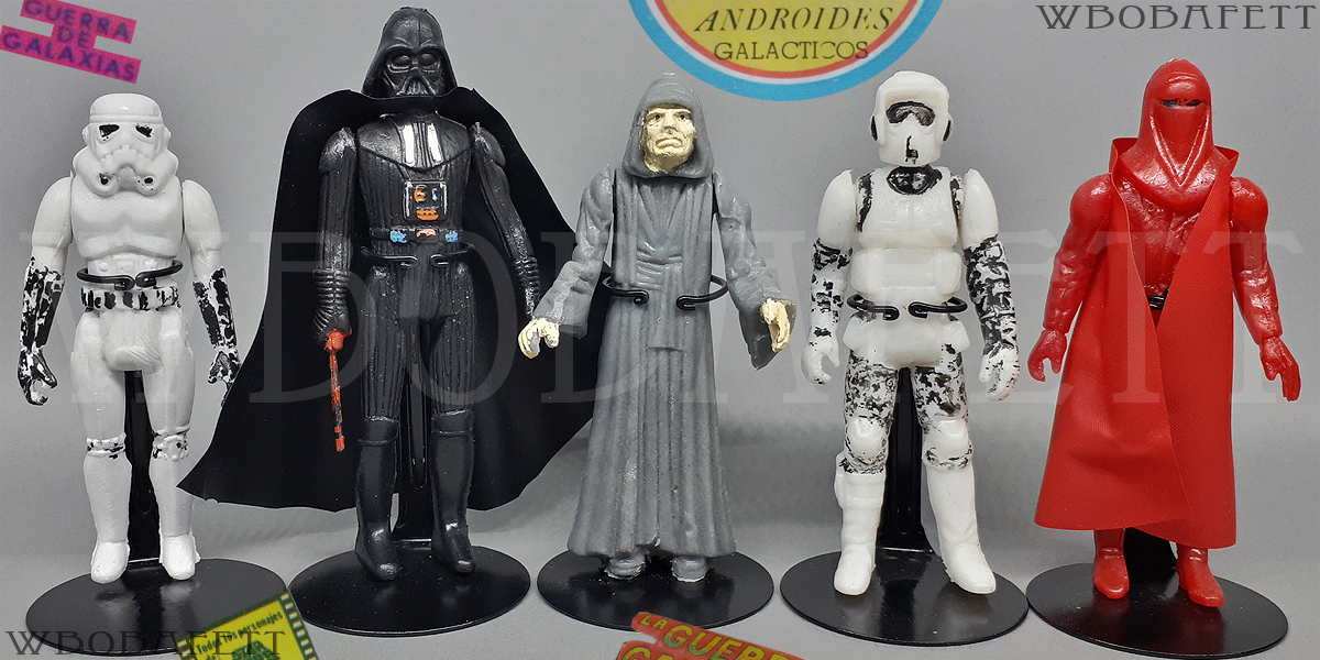 Shown above are Mexican 80s versions of Stormtrooper, Darth Vader, the Emperor, Biker Scout and Emperors Royal Guard.