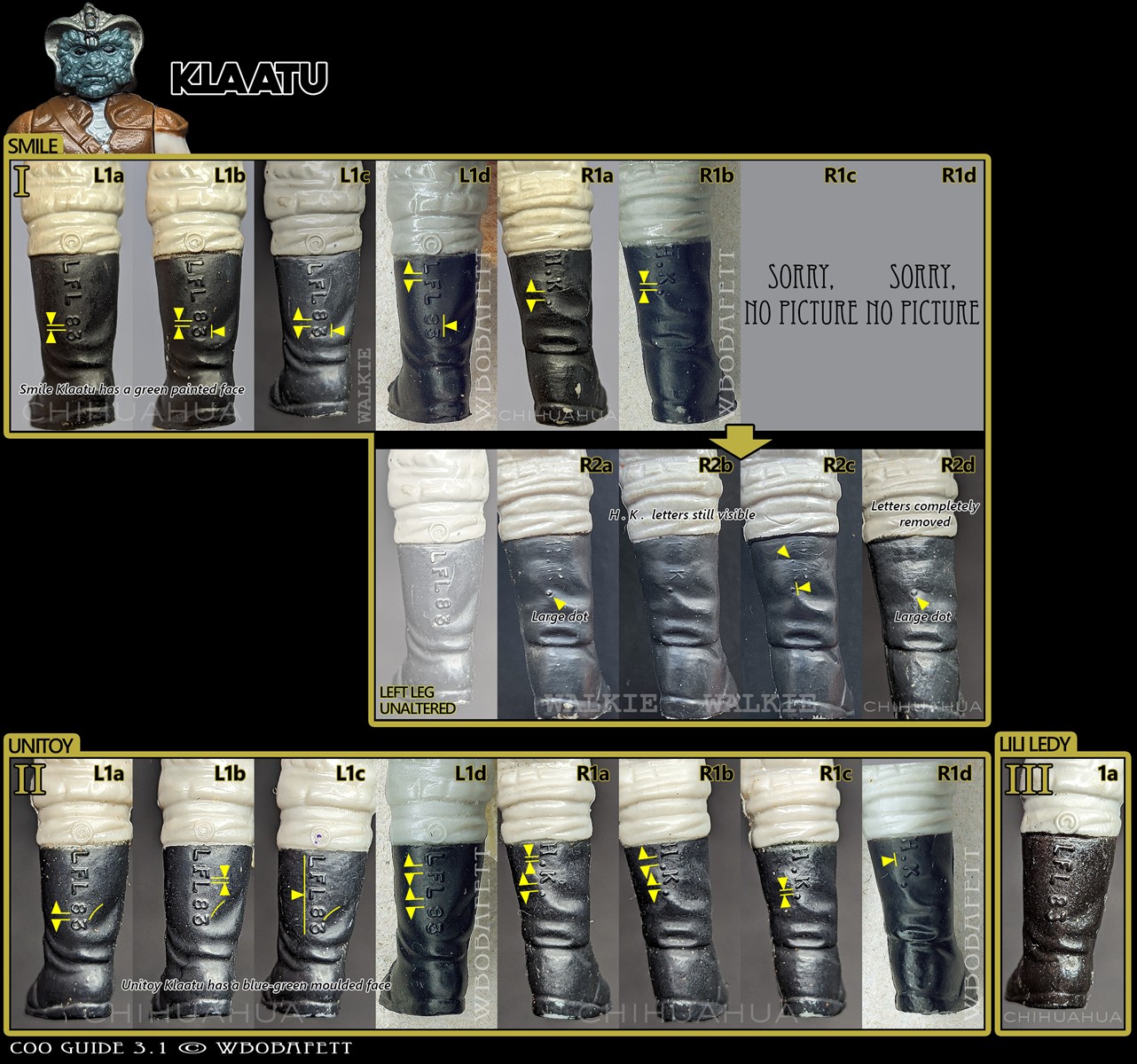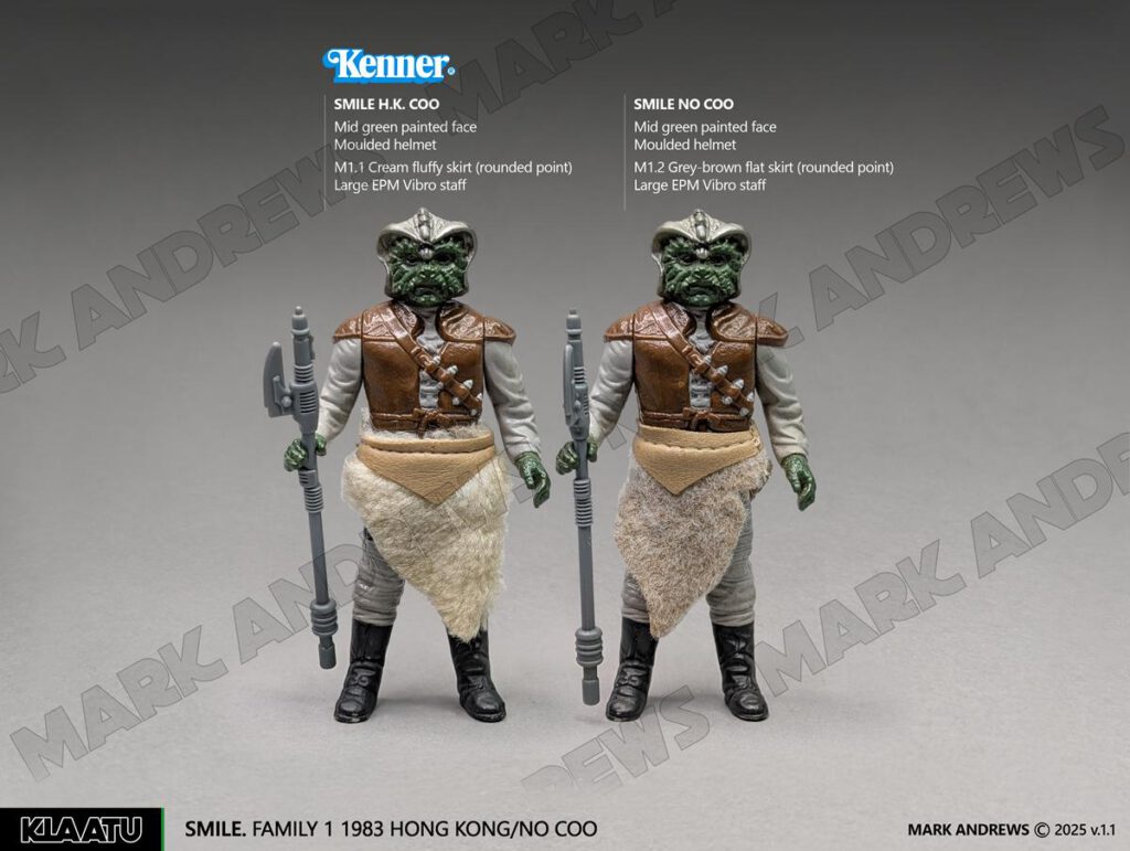 Smile’s Klaatu figure was released on 65, 77 and 79 back Kenner cards. This was also the figure packaged in the UK on Palitoy cards. Production of Smile’s Klaatu figure moved from Hong Kong to Macau for the later versions.