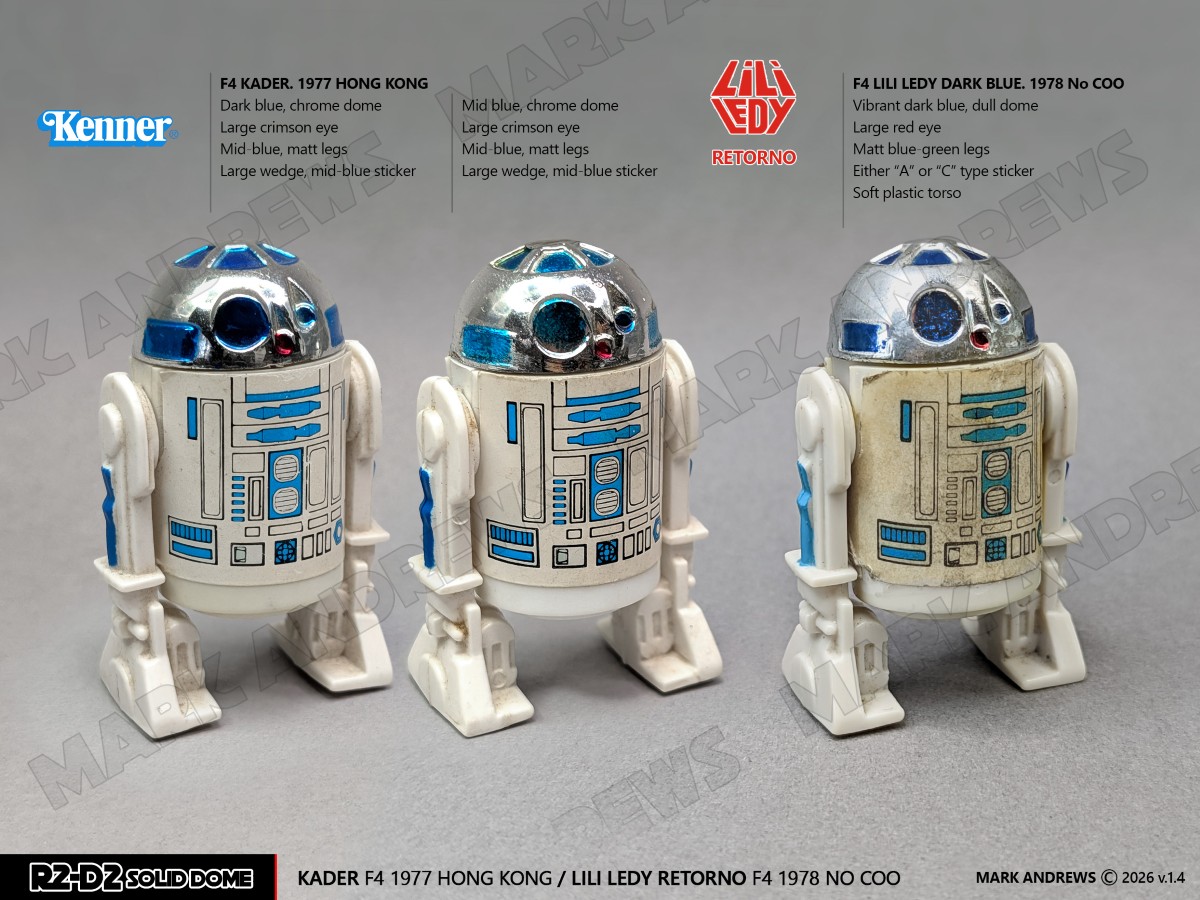 LILI LEDY received the F4 mould, modified to have no COO. This mould had previously been used for R5-D4 in Asia. The Lili Ledy R2 sticker is a unique artwork that was produced and utilized solely in Mexico. Refer to the sticker guide for details on the A, B & C type LL stickers.